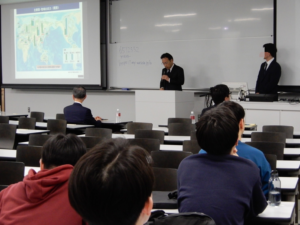 1月16日、防衛省の伊藤整備計画局長、政治経済学部の栗崎先生、若田部先生をお招きして対話企画を開催しました。